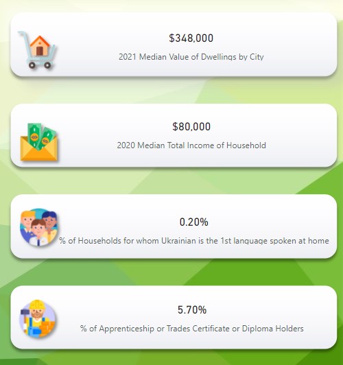 Statistics Canada publishes census data every five years, and it truly is an exciting time when you can only get certain information like household income, housing valuations, and rental prices. This image was part of the dashboard I designed for Ukrainian refugees coming to Canada.
